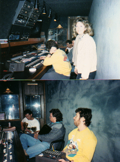 Above from back to front: the late Al Bruno, Steve Duncan, Bradley Hartman. We, CJP-NHRecords, did studio productions at many Los Angeles, CA USA studios using the best engineers and professional musicians when creating recorded song products for CJP-NHRecords to release for airplay. The list of those professionals on each project are easily found on page 10.